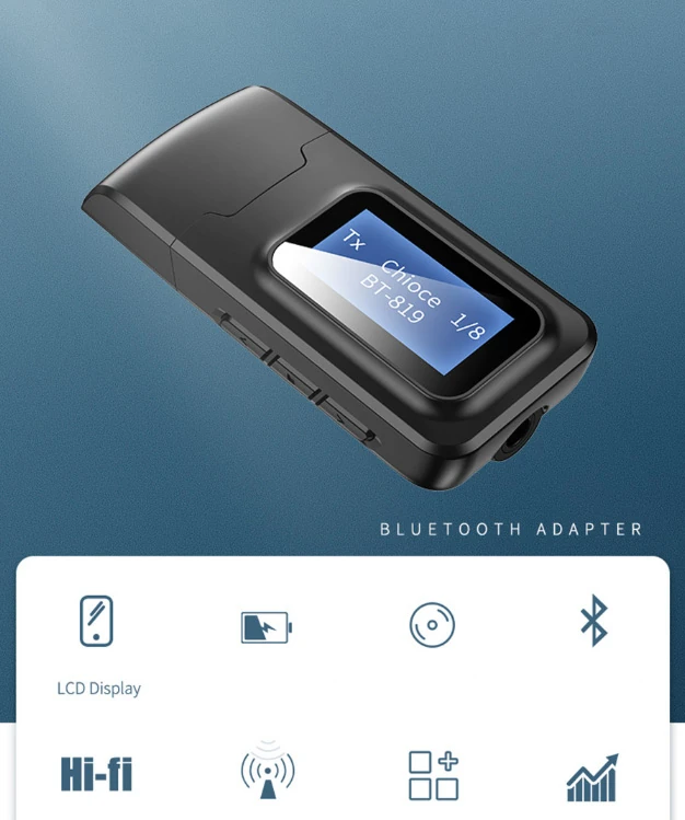 Verici, TV, AV alıcısı, radyo ve diğer ses kaynağı cihazlarınızı bluetooth kulaklıklarınıza veya hoparlörlerinize müzik akışını sağlar.
