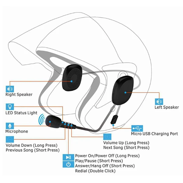 ALLY T2 Motosiklet Kask İçin Kulaklık Bluetooth 5.0 + Edr