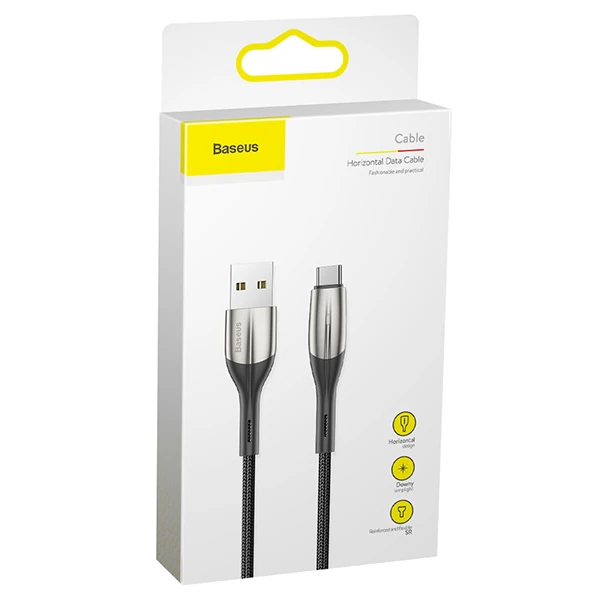 Baseus Horizontal USB Type-C 3A Sinyal Işıklı Hızlı Şarj ve Data Kablosu 1Metre CATSP-B01