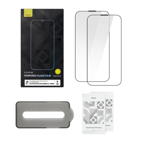 Baseus iPhone 14 Pro 6.1 0.3mm Full Koruma Tempered Cam Ekran Koruyucu 2 Adet Set