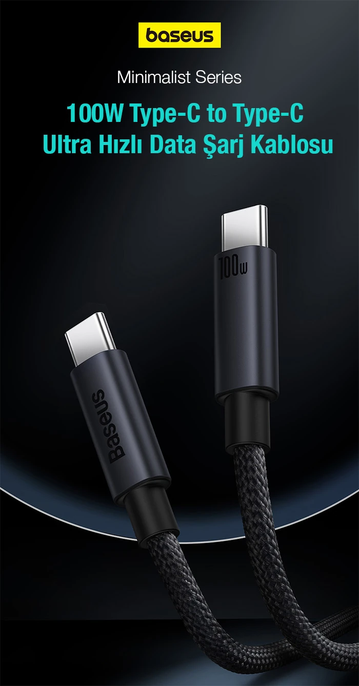 Baseus Minimalist Series 100W Type-C to Type-C Hızlı Data Şarj Kablosu 1mt CAJY010801Baseus Minimalist Series 100W Type-C şarj kablosu type-c arayüzlü cihazlar için ultra hızlı şarj deneyimi yaşatır.
