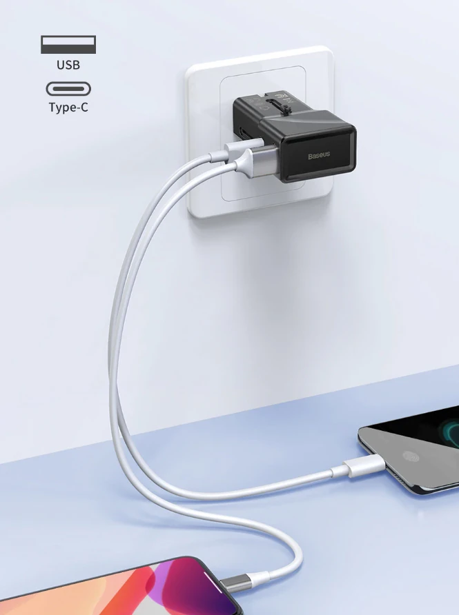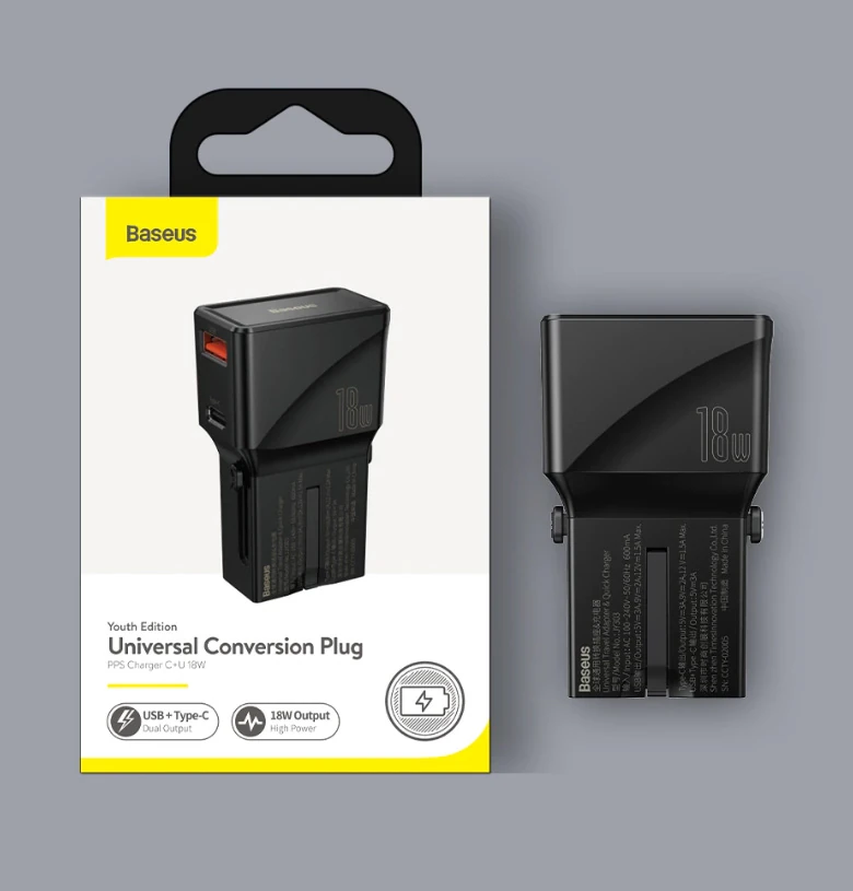 BASEUS PPS Hızlı Şarj Type-C+USB 18W Hızlı Şarj Universal Dönüştürücü Seyahat