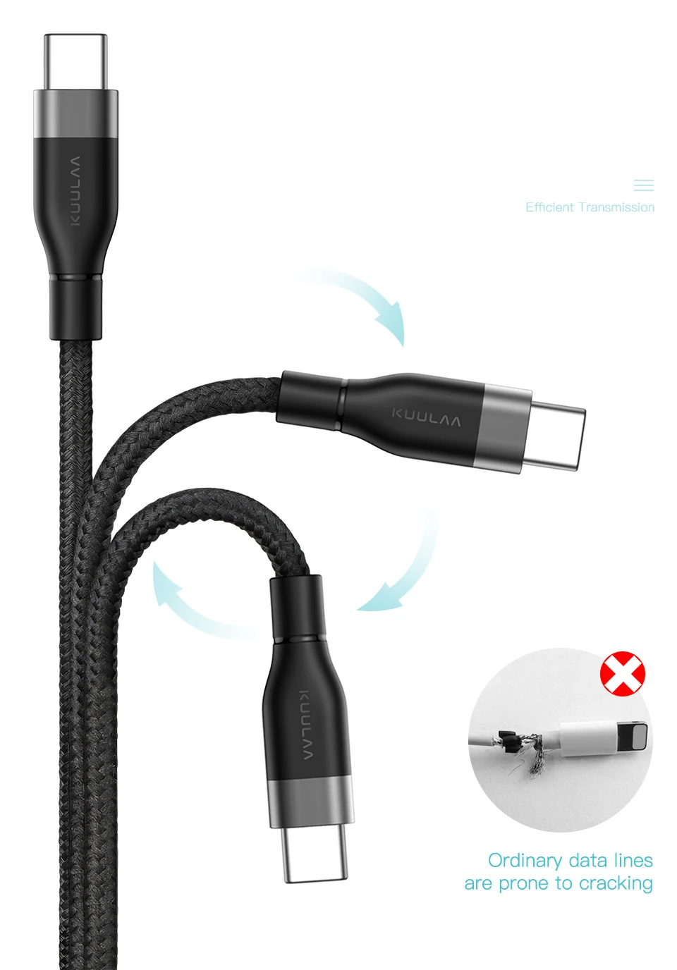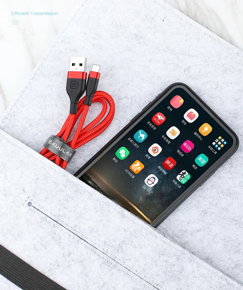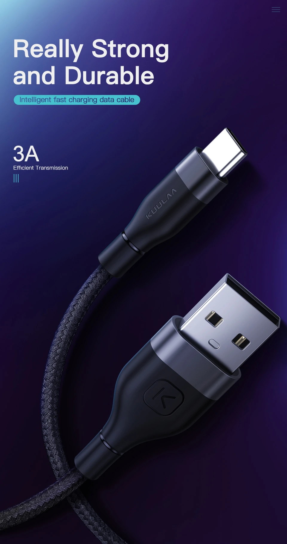 KUULAA Nylon Usb Type C 3.0 Hızlı Şarj Usb Şarj Kablosu 1Metre